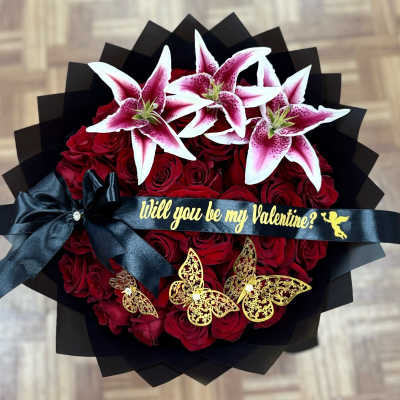 Price: $264.00 (Will you be my valentine?) Red roses & pink Asiatic lilies Product Tags: Best seller Same-day Delivery